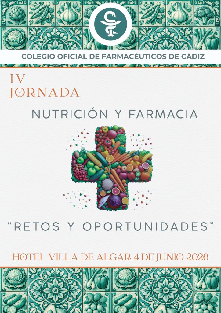 El Colegio de Farmacéuticos de Cádiz organiza la IV Jornada de Nutrición y Farmacia “Retos y oportunidades”, que se celebrará el 4 de junio en Algar