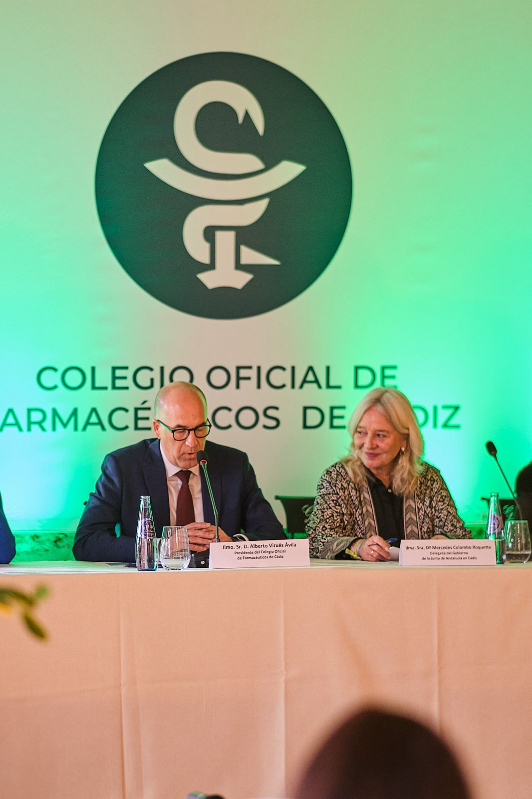 El Colegio de Farmacéuticos de Cádiz ha celebrado los actos en honor a su Patrona, la Inmaculada Concepción, en un acto que ha tenido lugar en Las Bodegas Los Gigantes de González Byass, en Jerez de la Frontera, y que ha servido para homenajear y reconocer a los compañeros farmacéuticos gaditanos por sus trayectorias profesionales y sus años de labor y trabajo al servicio de la salud de la población en la provincia de Cádiz. Este acto estuvo presidido por la delegada del Gobierno de la Junta de Andalucía en Cádiz, Mercedes Colombo; y el presidente del Colegio de Farmacéuticos gaditano, Alberto Virués.