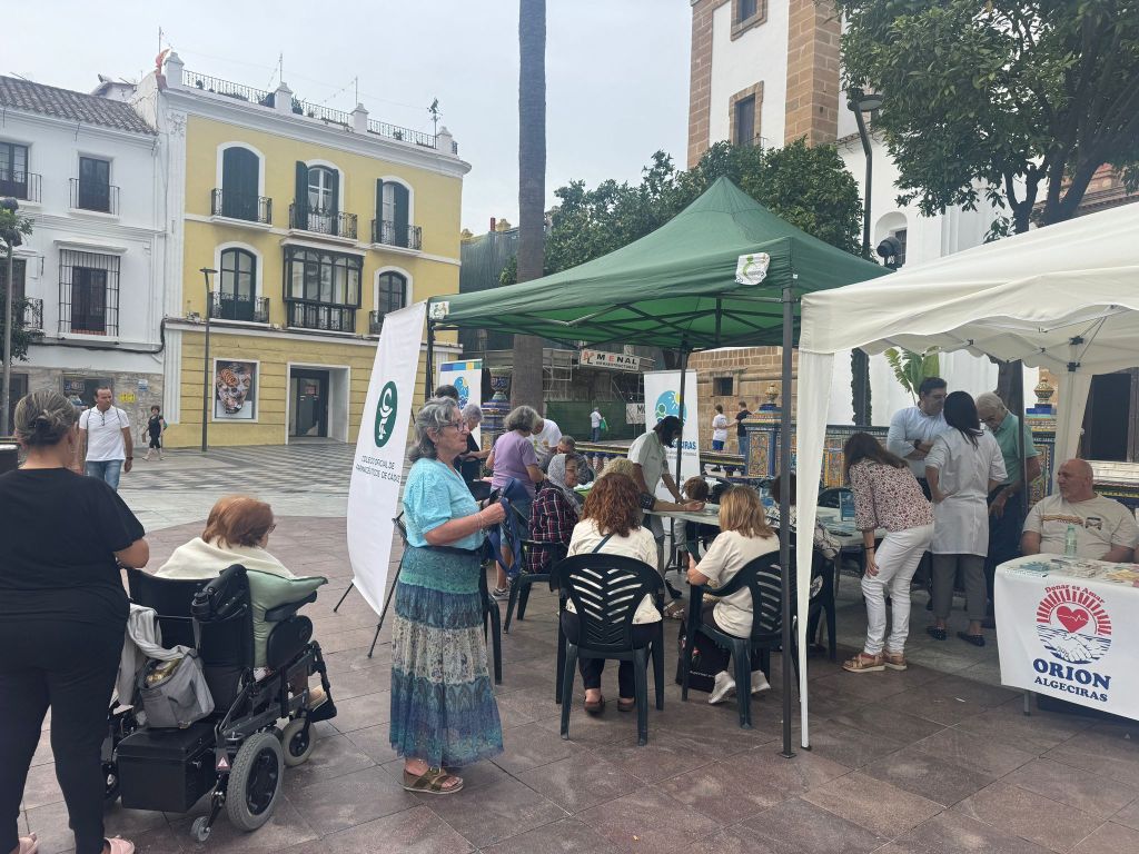 La Plaza Alta de Algeciras acogió el pasado 16 de octubre la IV Feria de la Salud, un evento organizado por el Ayuntamiento de Algeciras y el Grupo de Cooperación Mutua -colectivo que aglutina a las asociaciones de pacientes y de vecinos de la localidad-, con el fin de acercar a la ciudadanía información y recursos sobre hábitos de vida saludables, prevención de enfermedades y servicios asistenciales, y que contó un año más con la participación de nuestro Colegio.